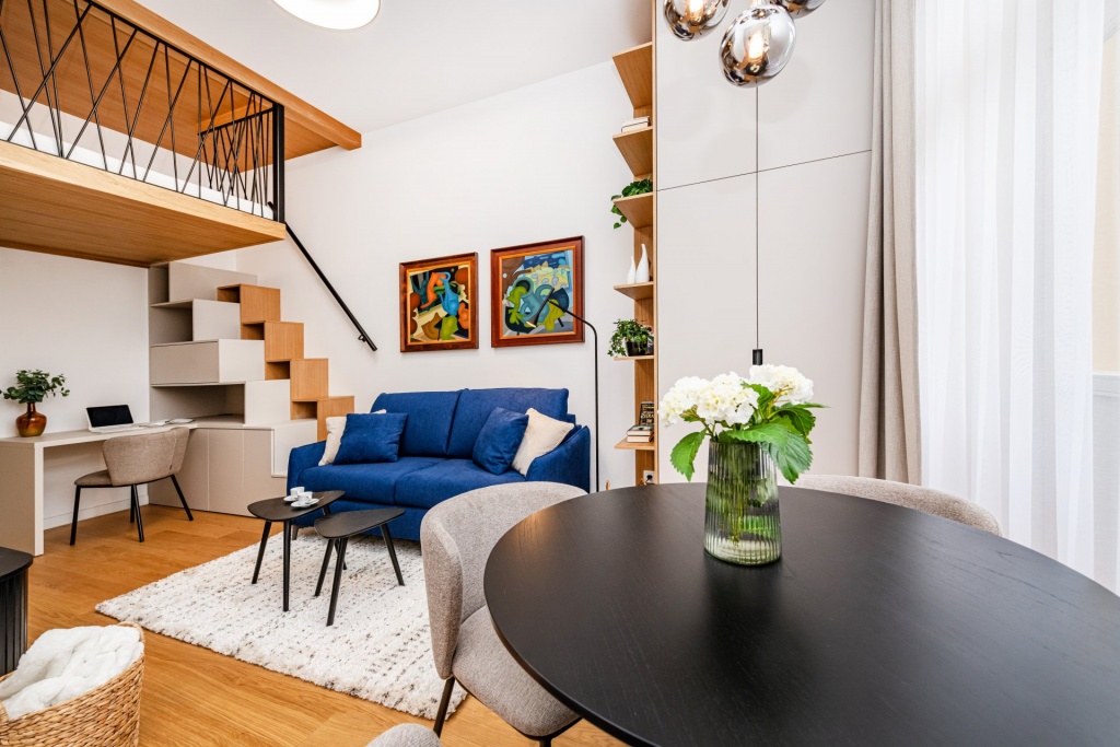 Navrhnout jednopokojový byt v historické zástavbě pražských Vinohrad je vždy dialogem mezi minulostí a současností. V tomto projektu jsme dostali za úkol vytvořit plnohodnotné bydlení na omezené ploše, které bude funkční, nadčasové a zároveň citlivé k charakteru domu i lokality. Majitelé bytu si přál interiér, který bude působit klidně, vzdušně a nebude podléhat krátkodobým trendům. Důraz byl kladen na kvalitní materiály, chytré úložné prostory a jasné vymezení jednotlivých funkcí – spánku, práce, vaření i odpočinku.