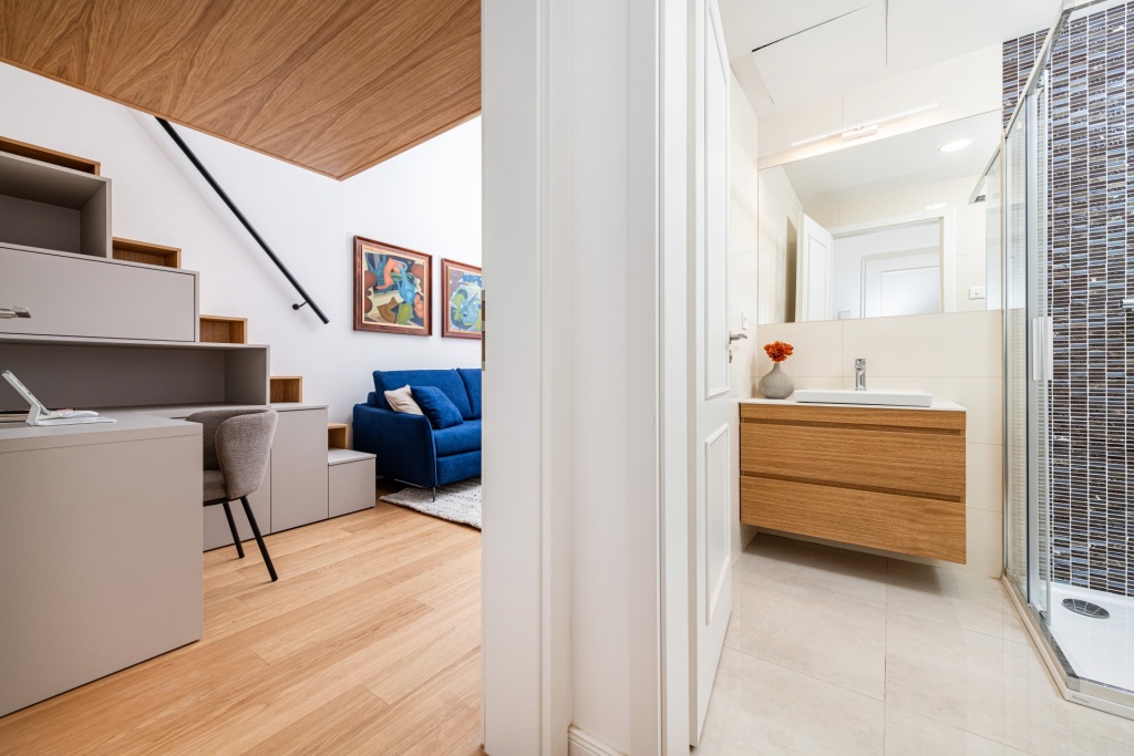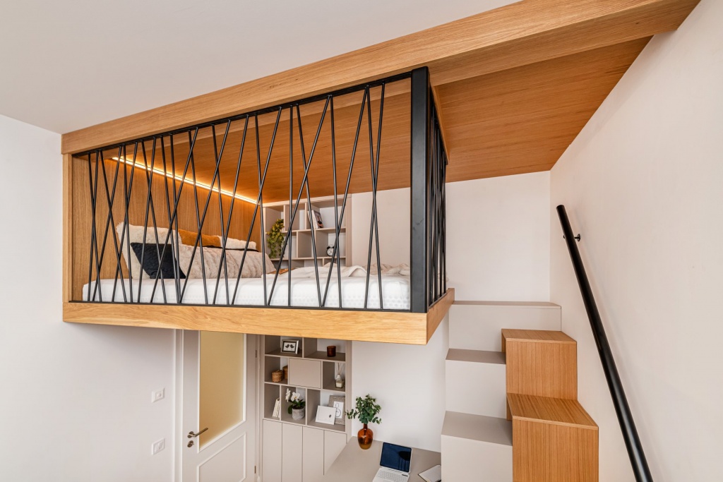Navrhnout jednopokojový byt v historické zástavbě pražských Vinohrad je vždy dialogem mezi minulostí a současností. V tomto projektu jsme dostali za úkol vytvořit plnohodnotné bydlení na omezené ploše, které bude funkční, nadčasové a zároveň citlivé k charakteru domu i lokality. Majitelé bytu si přál interiér, který bude působit klidně, vzdušně a nebude podléhat krátkodobým trendům. Důraz byl kladen na kvalitní materiály, chytré úložné prostory a jasné vymezení jednotlivých funkcí – spánku, práce, vaření i odpočinku.